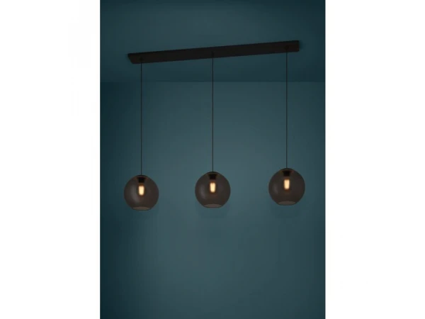 Deze moderne hanglamp Arangona van Eglo, hangt gegarandeerd beeldig in je interieur. De lamp laat een simplistische en strakke indruk na en kan een geweldige sfeerbrenger zijn voor boven je eettafel. De drie glazen bollen zijn matzwart en zijn bevestigd aan een zwart metalen plafondplaat.