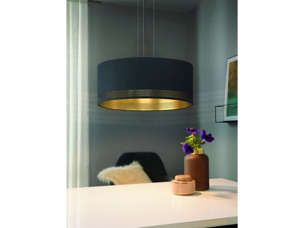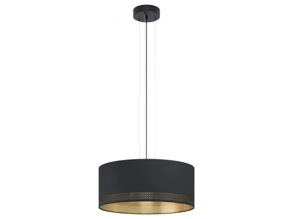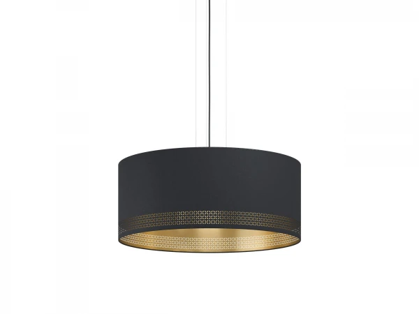 Hanglamp Esteperra van Eglo is een moderne plafondlamp met zwarte lampenkap uit textiel en gouden binnenkant. Perfect om een gezellige sfeer te creëren in je woonkamer of slaapkamer. De geperforeerde details in het goudkleurige staal zorgen voor een prachtig lichtspel. Plafondlamp Esteperra is beschikbaar in diverse uitvoeringen.