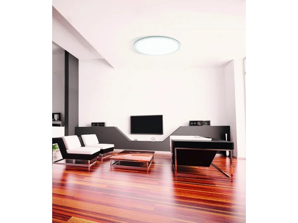 Een ronde, moderne plafondarmatuur krijg je in huis met deze Sarsina-A plafondlamp van Eglo. De behuizing in wit aluminium past mooi bij het gelijkmatig verdeelde licht van de geïntegreerde LED lamp. Deze plafondlamp met LED geeft je extra comfort, want hij is op afstand bedienbaar en dimbaar. Zo kun je de lichtsterkte naar wens aanpassen naar sterk wit licht, of gezelliger warm licht. En dit allemaal vanop afstand, met de bijgeleverde afstandsbediening.