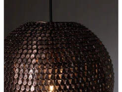 Deze sprankelende hanglamp bestaat uit honderden kleine stukjes koper, die worden gebrand voor een gevlamde look.