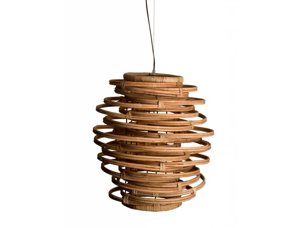 ‘Kubu’ is een stijlvolle hanglamp uit rotan. Niet alleen vormt hij een mooie eyecatcher in de kamer, aangestoken geeft hij een zeer mooi samenspel van licht en schaduw. Door zijn natuurlijke (ongeverfde) kleur is hij ook nog eens milieuvriendelijk vervaardigd.