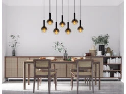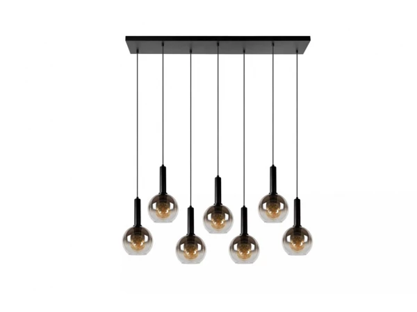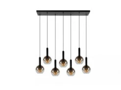 Deze gezellige hanglamp Marius van het merk Lucide bestaat uit zeven lampen. De unieke zwarte bolvormige glazen zijn voorzien van een fumé afwerking en geven je interieur een sfeervolle toets. Bovendien is de lamp in hoogte verstelbaar: je kan ze aanpassen in lengte, van 70 tot 150 cm. Dat maakt ze ideaal om boven je eettafel of zetels te hangen.