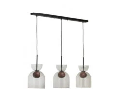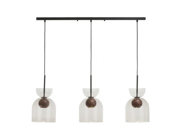 Hanglamp Skylar past perfect in elk interieur, door de mooie balans tussen de materialen in glas en metaal. De lamp is afgewerkt met bollen in houtlook en 3 moderne lampenkappen in antraciet. De lamp kan op verschillende hoogtes gehangen worden van 120 cm tot 160 cm. En door een bijpassende externe dimmer kan het licht worden aangepast naar de gewenste sfeer. De lamp is ook verkrijgbaar als wand-, tafel- of vloerlamp.