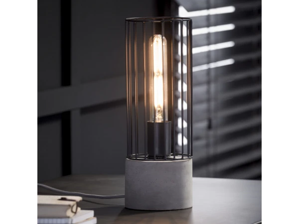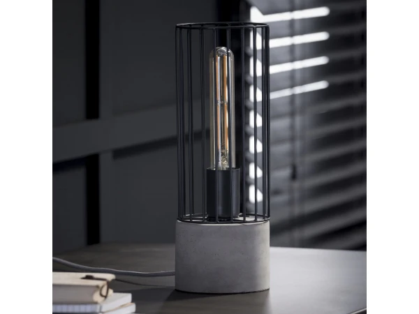 Hou jij van een strakke,moderne of industriële look? Dan is deze tafellamp perfect! De tafellamp heeft een cilindervormige kap. Hij is uitgevoerd in beton en zwart draadstaal. Het snoer met lampenknop is voorzien van grijs textiel. Je kan deze tafellamp ook heel gemakkelijk schoonmaken. Neem even een lichtvochtige doek en in 1,2,3 ben je klaar.