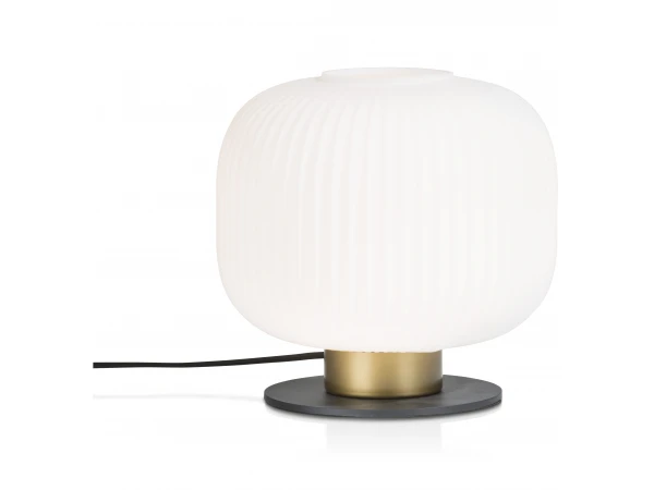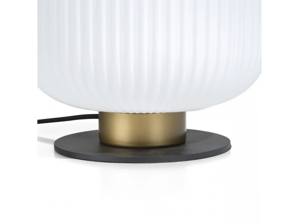 Tafellamp David zorgt voor een uiterst gezellige sfeer in je interieur. Het model heeft een lampenkap van melkglas met een bijzonder motief en een goudkleurige armatuur met zwarte voet in marmerlook. Dit geeft de moderne tafellamp meteen een luxueuze uitstraling. David is verkrijgbaar in twee verschillende maten. Liever een hanglamp of vloerlamp van dit model? Dat is ook zeker mogelijk!