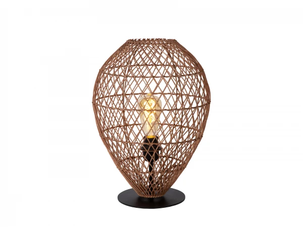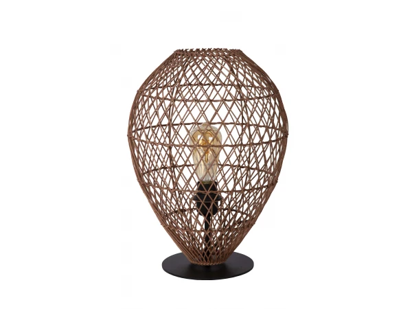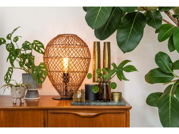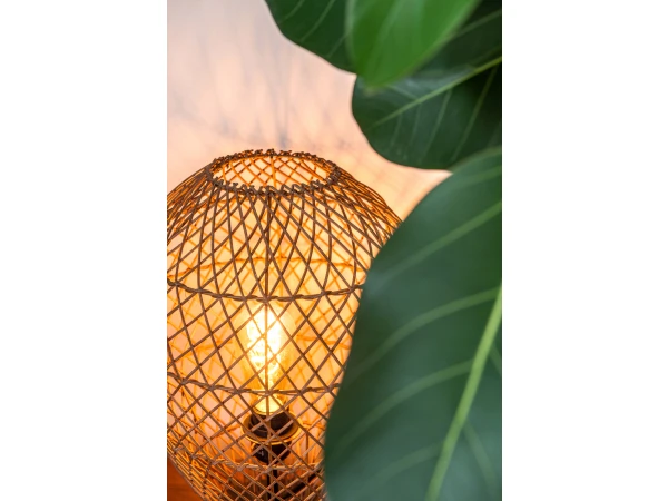 Als een schattig bolletje wol, maar dan met een stevige metalen voetplaat en rotan vlechtwerk. Zo verovert Kenjiro onze harten. Middenin deze tafellamp vind je de lichtbron, die door het vlechtwerk heen een gezellige toon neerzet. Door de compacte afmetingen voelt Kenjiro zich snel thuis in iedere ruimte van het huis, ongeacht je interieur. Als een tof accent in je hal, als sfeerverlichting in je woonkamer of als nachtlamp naast je bed. Aan jou de keuze. Je schakelt Kenjiro eenvoudig aan en uit via de schakelaar in het snoer.