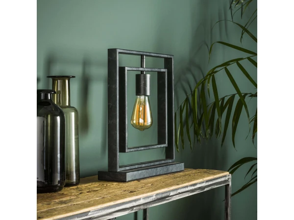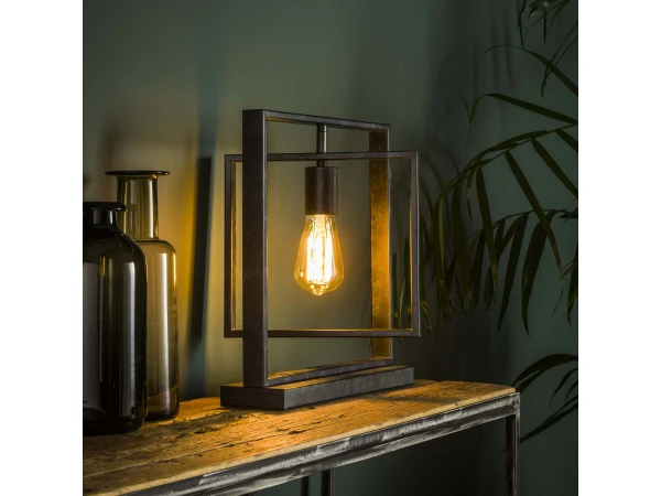 Tafellamp ‘Turn square’ is gemaakt van metaal met een Charcoal finish. Het buitenste vierkant zit vast op de voet en het binnenste vierkant kan volledig rond draaien, waardoor deze op de gewenste manier geplaatst kan worden. Door het opengewerkte armatuur komt de lichtbron volledig tot haar recht. Deze tafellamp maakt deel uit van serie bestaande uit twee hanglampen, een vloerlamp en een tafellamp. Er wordt aanbevolen een LED lichtbron te gebruiken.